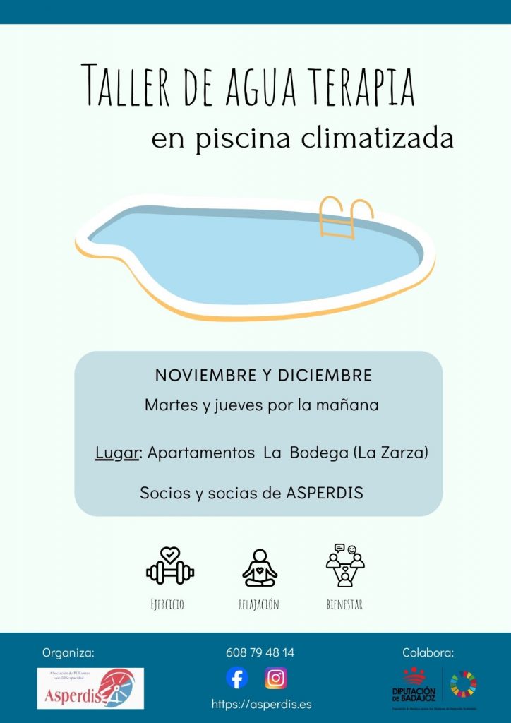 En este caso, el taller de agua terapia en piscina climatizada está financiado por la Diputación de Badajoz. Gracias a estas subvenciones ASPERDIS puede proponer talleres para mejorar la calidad de vida de las personas con discapacidad y familiares mediante ejercicios terapéuticos en el agua y guiados por profesionales.